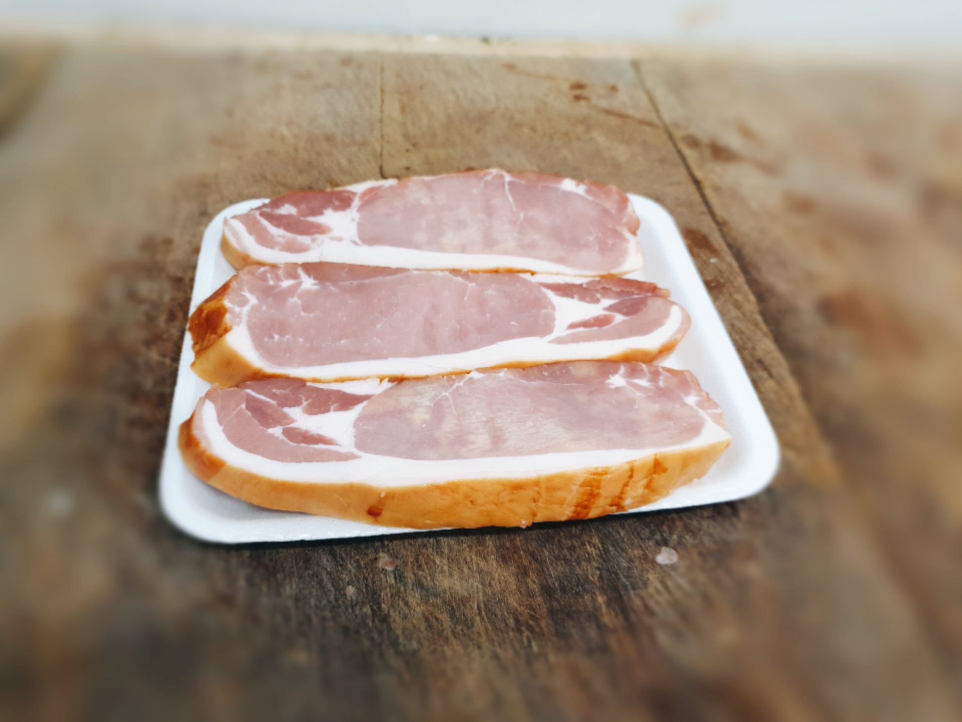 Smoked dry cured bacon chops a distinct, rich and smokie flavour that is truly magnificent. These bacon chops are thick cut and packed with flavour, perfect for adding that extra smokie taste to your breakfast, lunch or dinner.